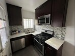 This modern 1-bedroom, 1-bathroom apartment plus garage storage is located upstairs in a charming four-unit building just nine blocks from the beach in Santa Monica. The unit features both a front and back door entry for added convenience and privacy and is filled with natural light throughout. Inside, you'll find high-end finishes including Caesarstone countertops, a stylish tile backsplash, stainless steel appliances, and sleek modern cabinetry with contemporary hardware. The bathroom is thoughtfully designed with a frameless glass shower, and the bedroom includes a ceiling fan for added comfort. A stackable front-loading washer and dryer is included in-unit, along with a tankless water heater and gas register heating. Please note, the unit does not have air conditioning. Storage is included in shared enclosed garage, parking allowed on a shared driveway access for 1 car, and easy permitted street parking on a quiet dead-end street. Residents also enjoy a shared grassy lawn and a communal BBQ area in the back perfect for relaxing or entertaining. Located just a quarter block from Lincoln Boulevard, the apartment offers easy walking access to the beach, bike path, and nearby attractions including the 3rd Street Promenade, restaurants, public transit, and the Metrolink. Commuters will appreciate the quick access to both the 10 and 405 freeways. This is a non-smoking property and pets are not allowed. The unit is available for a one-year lease, Owner pays for trash & sewer service; tenant pays for gas, water, wifi and electricity.
