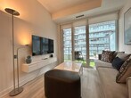 Discover the perfect place to live, work, and play in this apartment located just steps away from the vibrant Distillery District, iconic St. Lawrence Market, and the bustling waterfront. Enjoy unparalleled convenience with easy access to public transportation as the TTC is right at your doorstep, allowing you to explore a world of restaurants, shops, and entertainment options just minutes away. This apartment features a generous fully equipped eat-in kitchen with stainless steel appliances, including a glass top stove, microwave, dishwasher, and fridge. Relax in the queen-size bed with a Canadian-made Signature Kingsdown pillow top mattress featuring the full SilverClear Healthy Bed System. The apartment includes two bathrooms, Canadian-made upholstery, a dedicated desk, in-suite washer and dryer, central air conditioning and heating, unlimited high-speed internet, local home phone service, and a Digital Plus cable package.