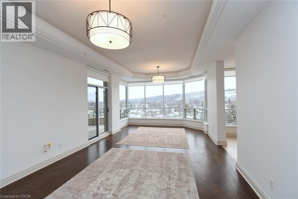 Spacious Penthouse suite with panoramic views. Upon entering the suite one is welcomed with a feeling of space,sweeping views and comfort. The living/dining room has hardwood floors,entrance to the balcony and large windows surround the room,the eat in kitchen with more windows,granite counter top and stainless steel appliances completes the central area of the suite. The second bedroom with large double closet and new broadloom is off the kitchen and adjacent is a separate four piece bath. The large primary bedroom has new broadloom,walk-in closet with built-ins and a spacious ensuite bath. The suite has in suite laundry and storage. For added storage there is a locker and TWO underground parking spaces. Condo amenities include a party room,work out area with sauna and a backyard patio on the ravine. (id:52069) ID#: 1523692