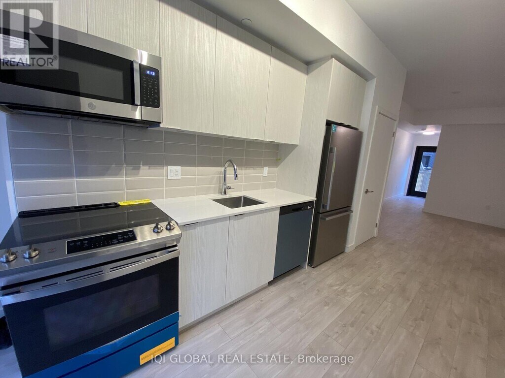 Discover the perfect blend of style and functionality in this stacked townhouse spanning the ground and lower levels. Designed to impress,this home features 9 ft ceilings and elegant hardwood flooring throughout.Natural light floods the space through floor-to-ceiling windows in both the front of the house and the ground-level bedroom,creating a bright and welcoming atmosphere. The contemporary kitchen boasts quartz countertops,stainless steel appliances,and a high-gloss beveled tile backsplash,combining beauty with practicality.The primary bedroom featuring large windows,wall-to-wall double door closets,and a 4-piece ensuite bathroom. The third bedroom offers versatility,complete with his & her closet. Ensuite laundry enhances the comfort and convenience. Situated near public transit,shopping,Lake Ontario,beaches,schools,a community center,and a variety of eateries,this townhouse provides the perfect balance of urban convenience and serene living. Pictures were taken before the current tenants move in! (id:52069) ID#: 2104070