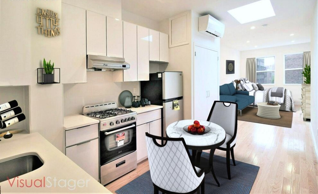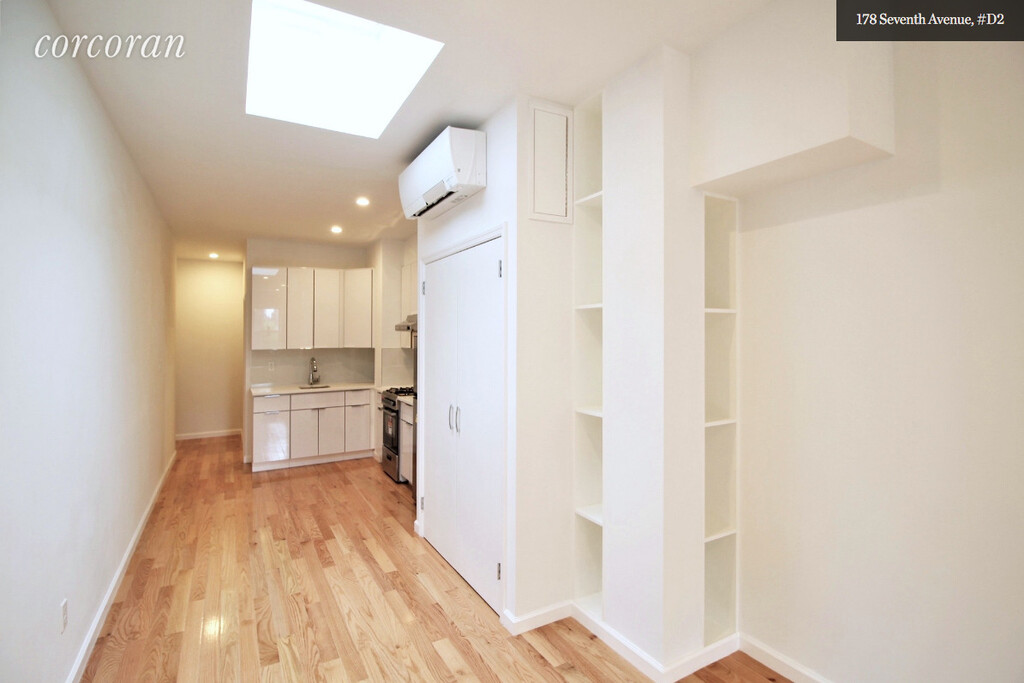 THE APARTMENTS: Available for immediate move in. No Fee! - Unit#D2 - Sun-filled Top floor BRAND NEW EVERYTHING, unfurnished large studio with sleek modern finishes! White-finished chef's kitchen with stainless steel appliances, granite countertops, tiled backsplash and endless white lacquered cabinetry. White-finished bathroom with vanity, extended granite countertop, floor to ceiling tiling, exhaust fan and wall-mounted heater. High quality hardwood strip flooring throughout. Built-in floor to ceiling shelving. Large double door closet with two above storage compartments. Large storage cabinet above hallway entrance. New windows with granite window sills. Large skylight. Recessed lighting. Temperature controlled heating & cooling unit (HVAC) that are pin-drop quiet and energy efficient. High ceilings. Bright apartment facing west over tranquil back gardens. 5th floor/ top floor (4 flights of stairs). - Unit #C2 - Pristine and bright west facing studio onto gardens below. Great afternoon streaming sunlight! Entrance hallway/foyer area into apartment. Large full kitchen with breakfast bar and ample cabinetry. Spacious full bathroom with vanity sink and bathtub. Recessed lighting with dimmer switches. Beautiful high quality hardwood strip flooring throughout. Thick double pane windows. 2 closets with ample storage within and above and built in shelving. Temperature controlled electric heating & cooling unit that is pin-drop quiet and energy efficient. 9 ft ceilings. 4th floor (3 flights of stairs). THE BUILDING: Post-War built in 1982. Very clean, well-maintained building with recently renovated interior hallways. 24 hour security surveillance cameras. Video Intercom. Laundromat in storefront level of the building (Quick Coin Four). 1 small dog under 25 lbs OR 1 cat considered case by case. Non-smoking building. THE LOCATION:== Prime Chelsea location on 7th Ave between 20th and 21st Street. Within minutes of 1, 2, 3, A, C, E, F & M subway trains. Endless choices of restaurants & bars. Whole Foods @ 24th St & 7th Ave (3 street blocks). Trader Joes @ 21st St & 6th Ave (1 avenue block).