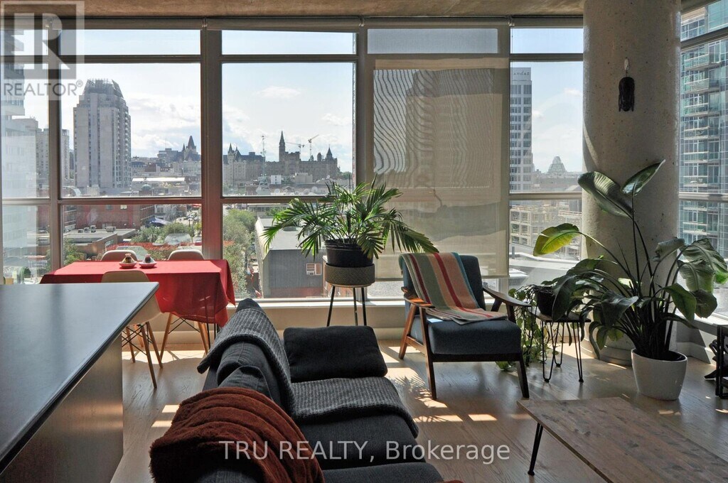 Incredible 2-bedroom apartment in the Byward Market with an amazing view of the Peace Tower,coveted underground parking and a storage locker! Floor-to-ceiling windows flood light through the kitchen and living space. Equipped with 5 appliances,and in-suite laundry,the open concept and beautiful design make this a fantastic place to come home to after enjoying the endless opportunities of shopping,dining and entertainment in the most exciting part of the Capital! Enjoy a morning coffee or a nightcap on your generously sized balcony with sunset views overlooking Parliament. Walk to work or to the LRT. Building amenities include a gym,a private courtyard with BBQ and a party room you'll love entertaining in! Rent includes heat,A/C and water! Whether urban lifestyle or downtown convenience,this unit has everything you can hope for and all at an incredible value! (id:52069) ID#: 1404305