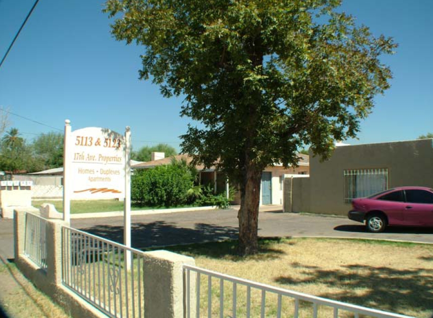 Meet your new apartment at 17th Ave in Phoenix. These apartments are located at 5113-5123 N 17th Ave in Phoenix. At this community, you'll have access to top features and amenities including: convenient on-site parking options and smoke free options. Experience a new standard at 17th Ave.