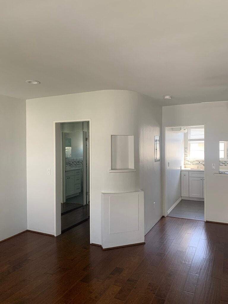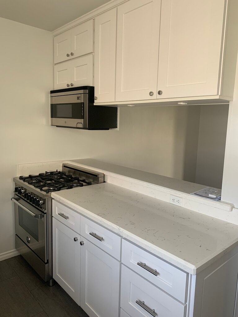 Rare Studio Unit Available 4/1/2026 $2,395/month SANGRI-LA! Classic Original California Bungalows, located on a HUGE Triple lot. Room, privacy, tranquility, gardens, fountain… No finer bungalow courtyard style complex exists in Santa Monica. See for yourself. Dedicated Bike Lane runs from the property south to the 17th St. Metro Station. Enter the property through massive iron gates built into decorative brick wall, topped by huge antique lanterns. Must be seen to be appreciated. GENERAL OVERVIEW: These large, single units have been recently remodeled to complement this mid-century architectural gem. Property features brand new interior & exterior paint, two on site laundry facilities and complementary bike storage. INTERIOR UPGRADES: Fully remodeled bathrooms include tile shower enclosures, high-end glass doors, large mirrored bath cabinetry, updated fixtures, toilets, and recessed lighting. Gourmet chef’s kitchen features top of the line Italian stainless steel appliances, four stage water filtration system connected to icemaker, white shaker soft close cabinets / drawers & quartz counter tops. Alpi Grigio Porcelain flooring in kitchen / bath and hardwood floors throughout the living area. Two large closets with full length mirrors contain custom built-in cabinetry. TV / Entertainment area also includes custom built-ins.