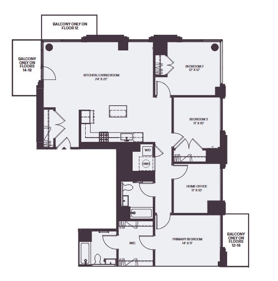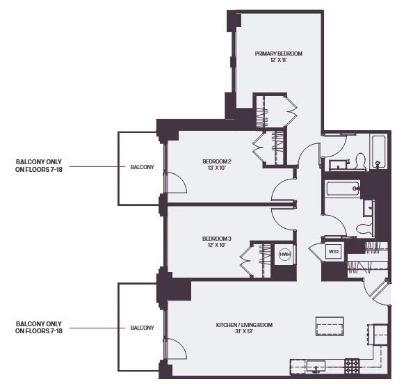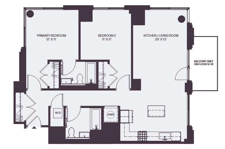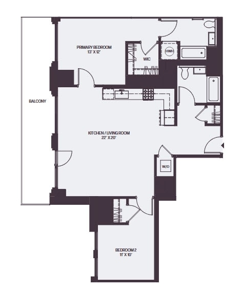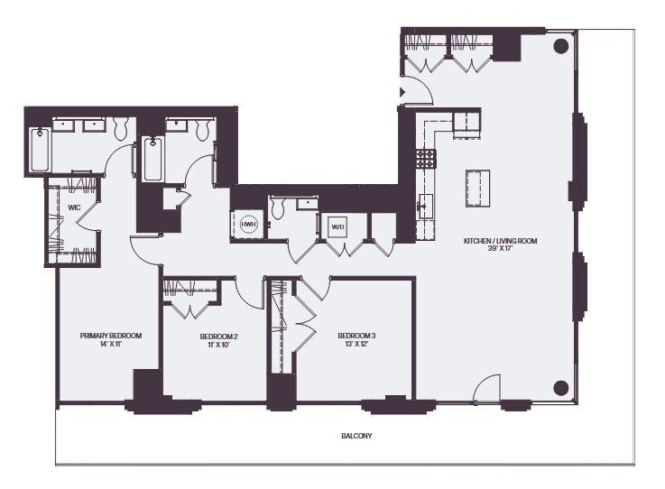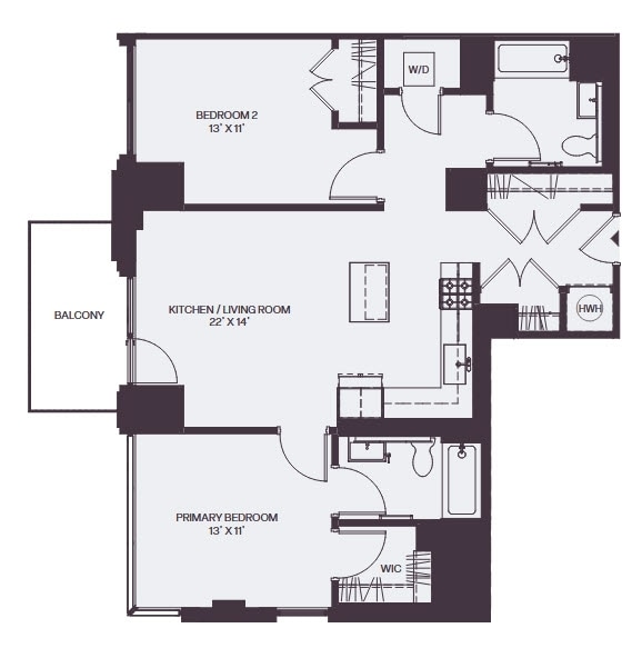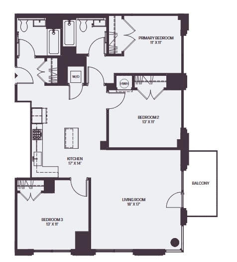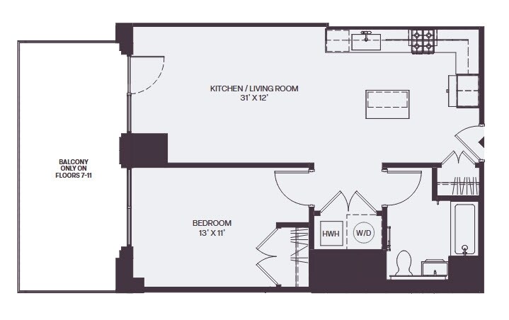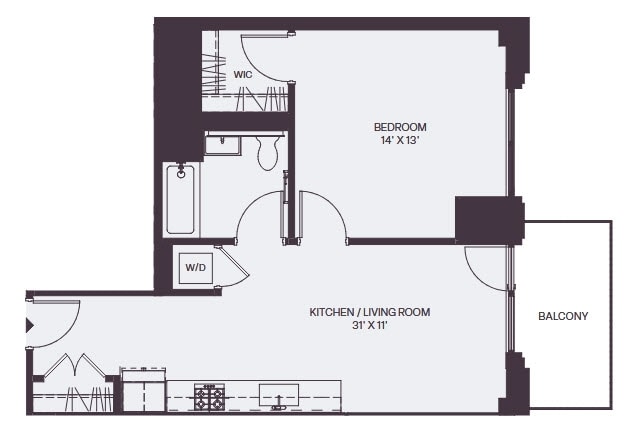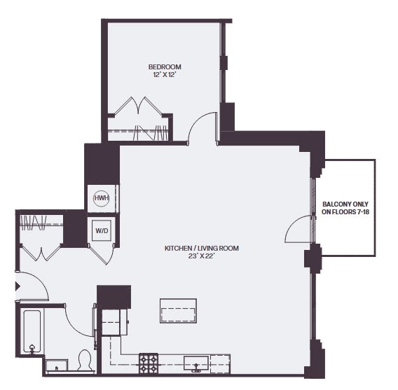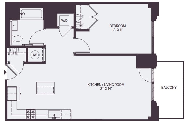 A03 - Floorplan 1 Apartment Unit: 0601Apartment Model: A03$2,9771 Bedroom, 1 Bath, 584 sq ftAvailable NowFloorplan A04