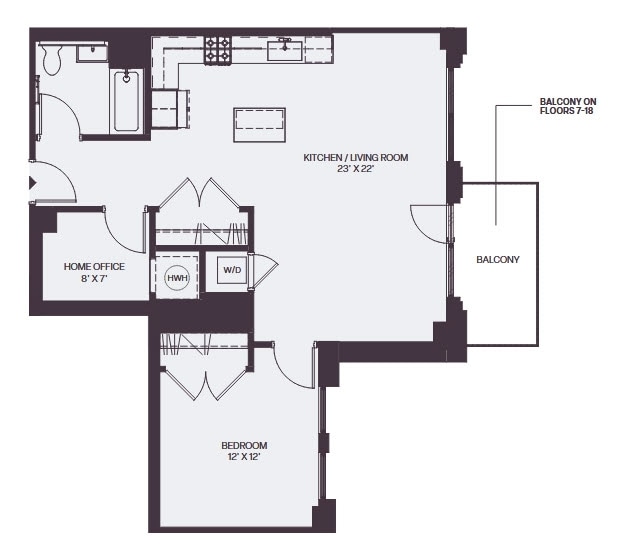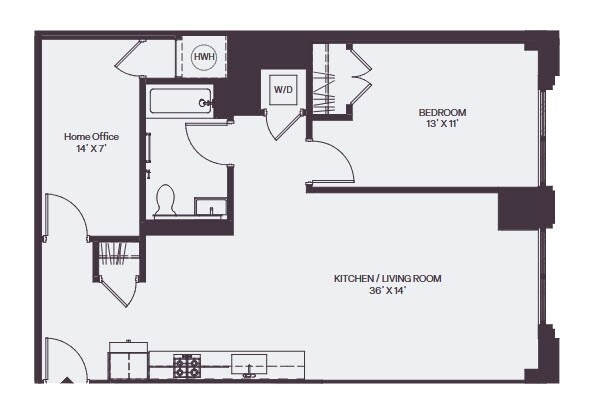 Studio, 1 Bath, 534 sq ftModel Gallery