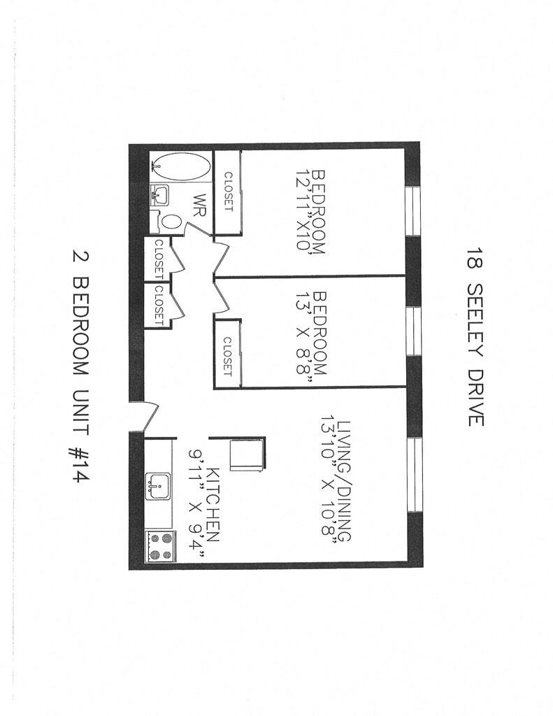 2 bedroom, 1 bathroom, no balcony - Floorplan 9 ![]()