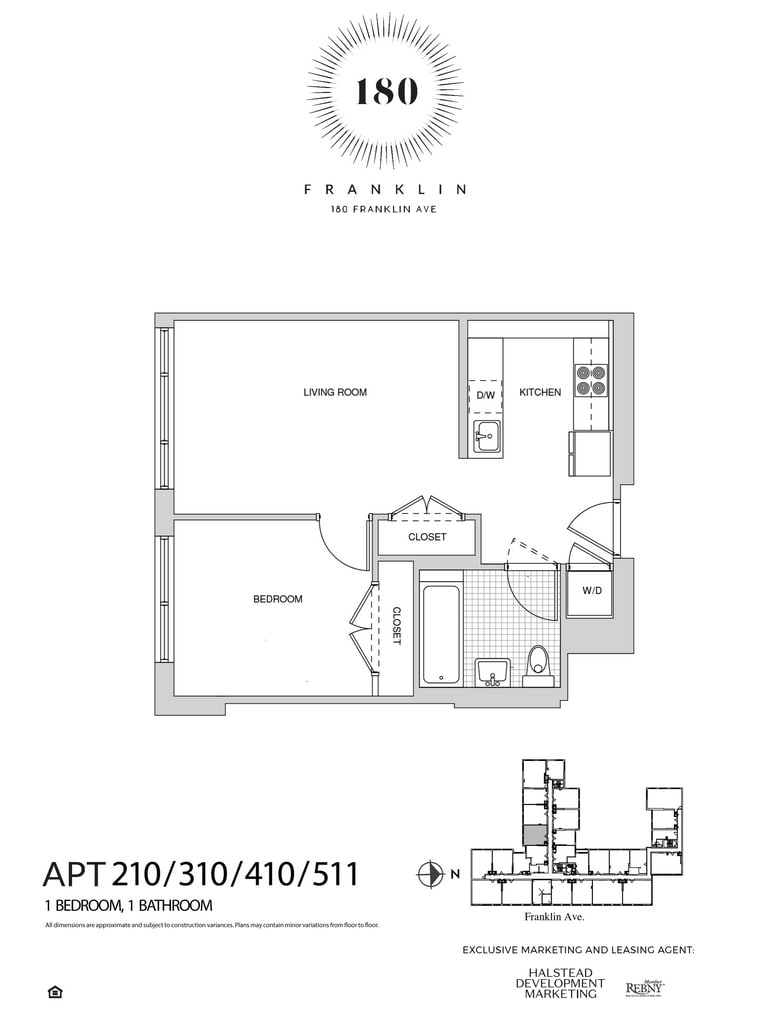 Situated on an acre of land, 180 Franklin Avenue’s modern new rental residences and creative amenities border Brooklyn’s trendy Clinton Hill and historic Bedford Stuyvesant neighborhoods. Bold, modern, and fun, with a shot of urban luxury, studios, 1 & 2 bedrooms, and duplexes feature state of the art kitchens and bathrooms as well as in-unit washer dryers. Select units also offer large private outdoor patios. Of-the-moment amenities include a vibrant social lounge with pool table, full circuit and cardio fitness center, sound proofed music rehearsal space, artist workroom, bike storage, and on-site parking. 180 Franklin’s fully landscaped roof deck and features barbecues, outdoor seating and dining areas. The neighborhood is dotted with parks, diverse eateries, and gorgeous turn of the century brownstones and row houses. An easy trip to the Pratt Institute and eclectic local shops, 180 Franklin Avenue is also close to the G, A & C subway lines.