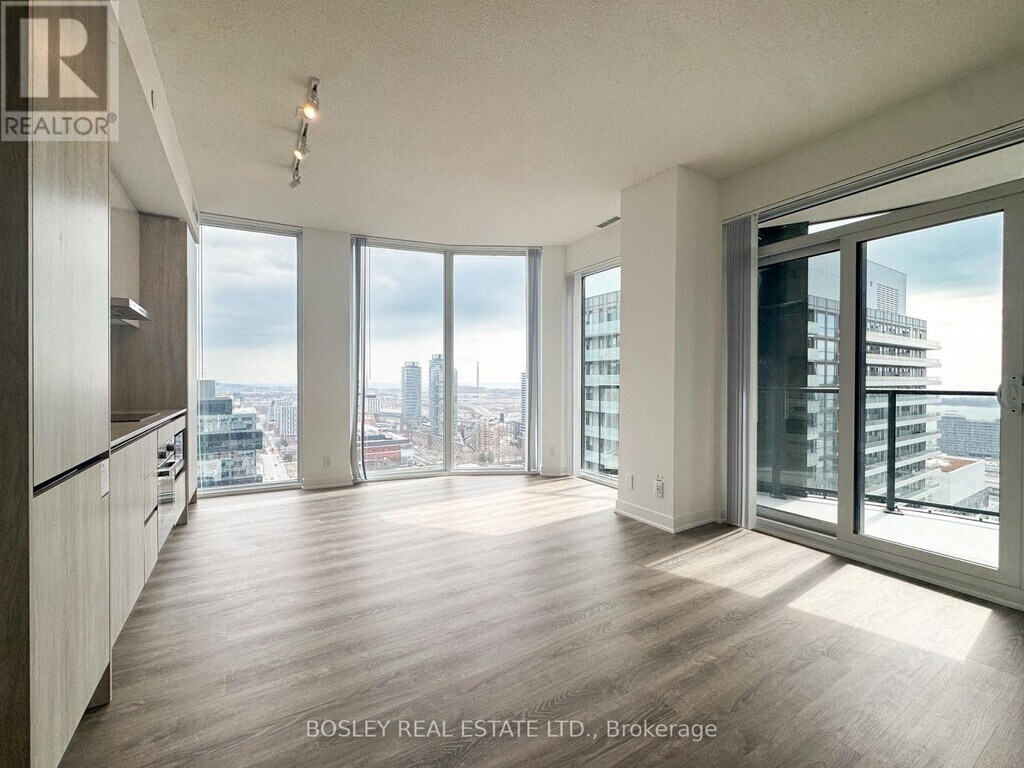 Perched high above the city on a coveted corner,this modern 3-bedroom,2-bathroom suite offers a striking blend of light,space,and panoramic perspective. Floor-to-ceiling windows wrap the living areas,framing views of Toronto's skyline and the shimmering lake beyond-an ever-changing backdrop from sunrise to dusk. Thoughtfully designed for both comfort and flow,the open-concept layout balances expansive entertaining space with defined living and dining zones. The contemporary kitchen anchors the home with sleek finishes,integrated appliances,and a generous island ideal for casual dining or hosting. Each bedroom is well-proportioned and filled with natural light,with the primary suite offering a private retreat complete with a spa-inspired ensuite. The additional bedrooms provide flexibility for family living,guests,or a dedicated work-from-home setup. Set in the heart of the St. Lawrence neighbourhood,you're just steps from the iconic market,neighbourhood cafés,and everyday essentials. Lakeside promenades and waterfront trails are moments away,while convenient transit connections keep the rest of the city effortlessly within reach. Elevated,refined,and quietly set above the city's energy,this residence captures the essence of modern urban living-where skyline drama meets everyday ease. (id:52069) ID#: 2019316