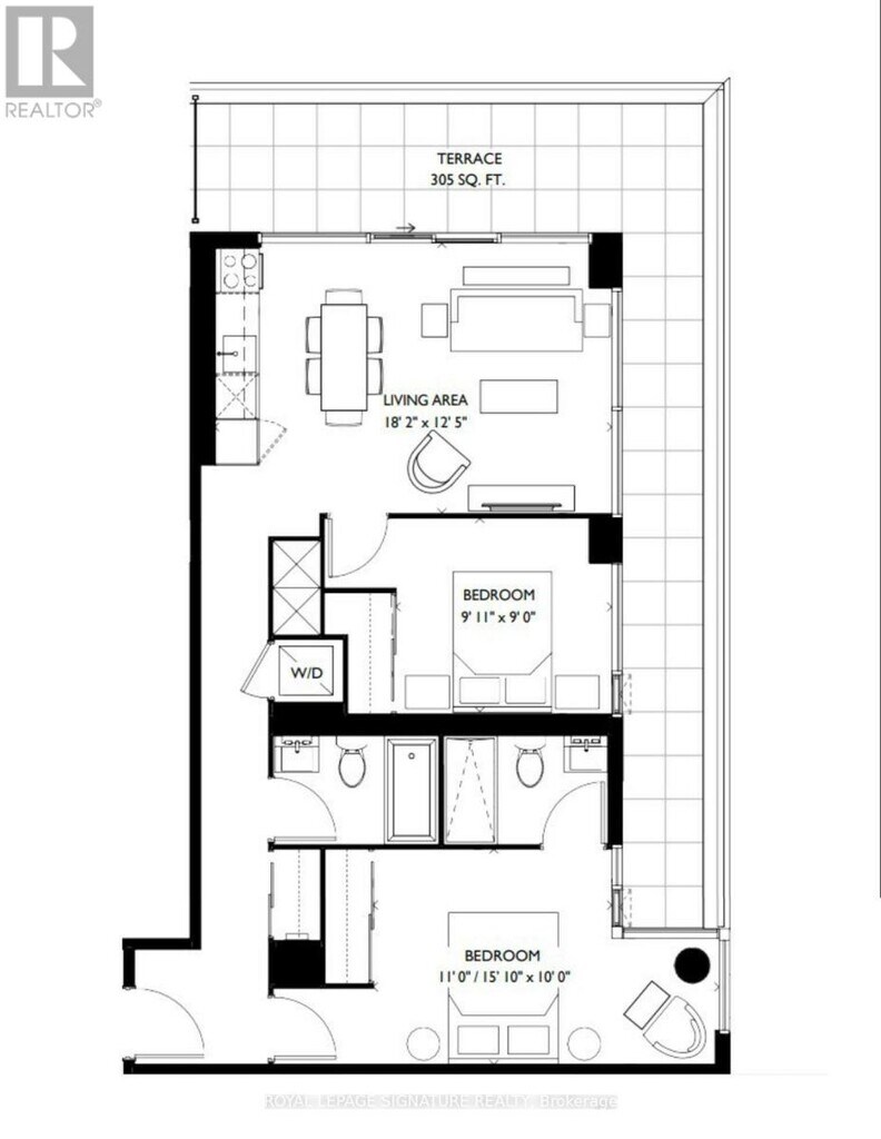 One of the most unique 2-bedroom,2-bathroom suites at Canary Commons in Toronto's vibrant Canary District! Complete with one parking space conveniently located just steps from the elevators (see photo 21),one locker,and complimentary high-speed internet. This suite is not only conveniently located near the elevators but also just steps from the building's outdoor rooftop patio! Boasting a smart and functional 801 sq ft layout wrapped with a 305 sq ft oversized open terrace,this home is filled with natural light from its stunning southwest exposure and floor-to-ceiling windows. With 9 ft ceilings and laminate flooring throughout,every detail has been carefully designed. The sleek kitchen is equipped with stainless steel appliances and ample storage. In addition,enjoy the ultimate convenience of having Marche Leo's grocery store on the ground floor,making daily errands effortless. Amenities include a 24-hour concierge,a state-of-the-art fitness centre (see photo 25),a versatile party room,pet-washing area,Pilates/yoga studio,theatre room,and more. Steps away from the Distillery District,St. Lawrence Market,waterfront trails,parks,TTC,DVP,George Brown College,Gardiner,Université de l'Ontario français,the location is unmatched. Designed with everyday convenience in mind,this condo is ideal for professionals,couples,and families looking for a high-quality rental in one of Toronto's most vibrant communities. Don't miss the opportunity to call this exceptional property home! (id:52069) ID#: 2181061