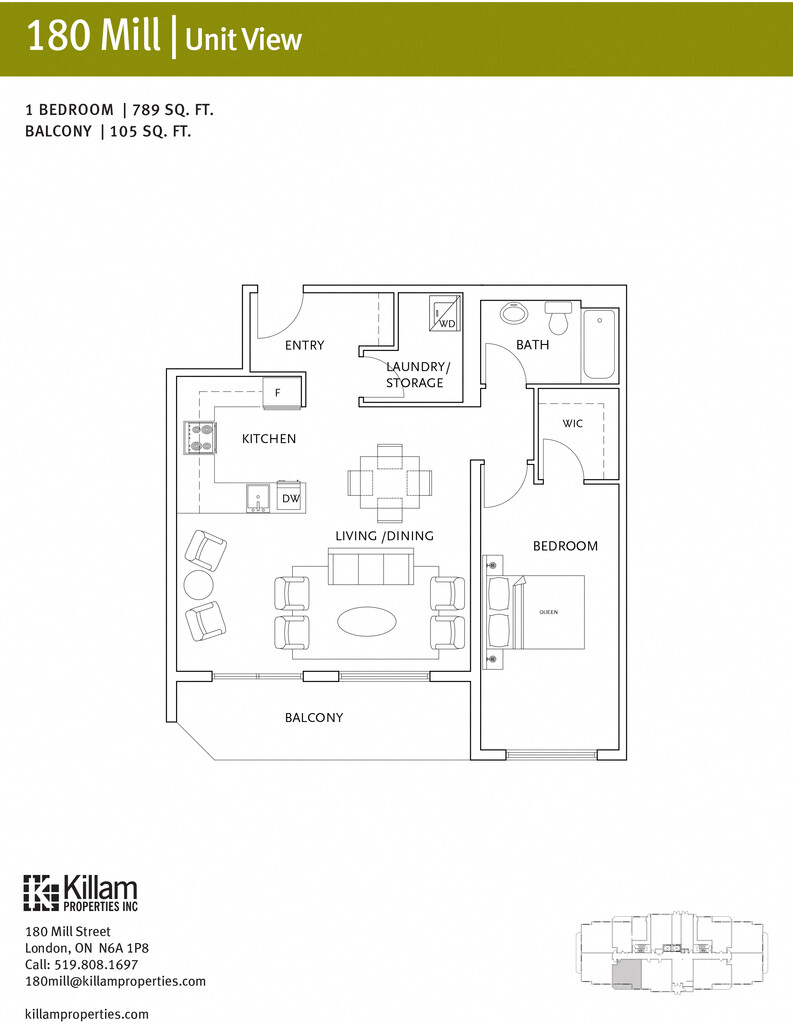 1 Bedroom to 3 Bedroom Apartments at 180 Mill Street currently range from C$1,785 to C$3,195