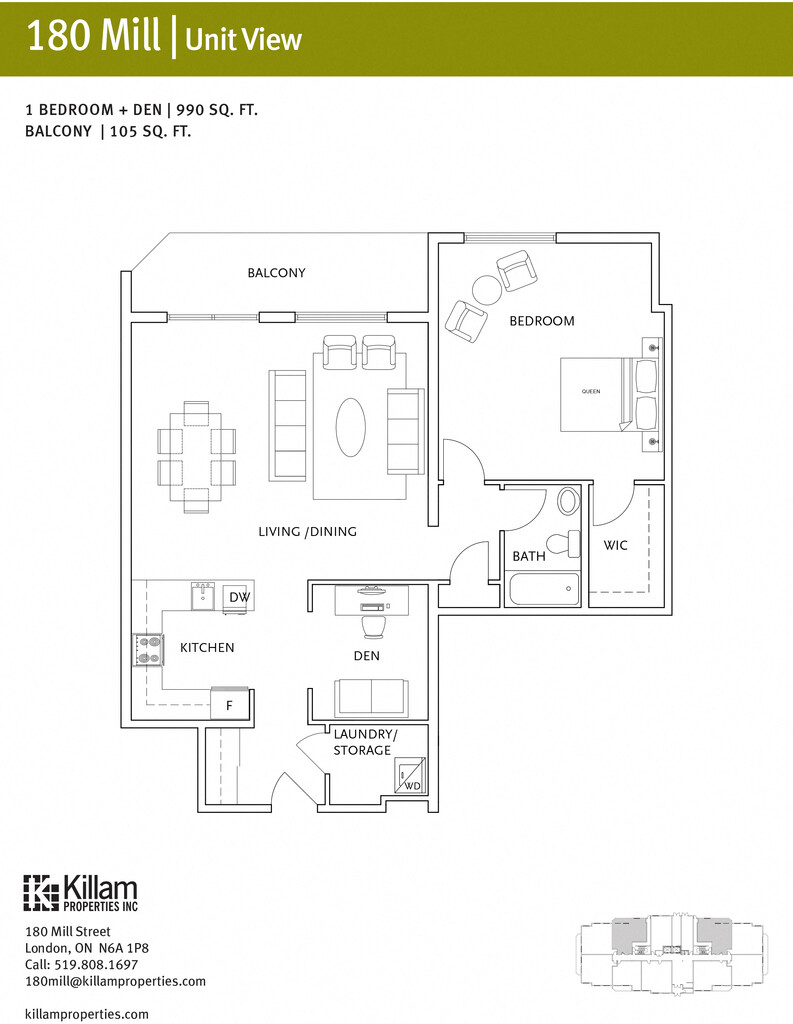 Availability Date Unit Sq Ft Call for Availability 1 Bedroom + Den 990 sq ft Model Amenities and Features