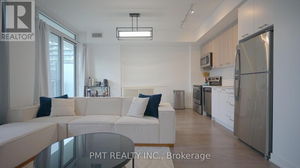 Opportunity for a Rarely offered FULLY FURNISHED modern condo built in 2021. Offering a bright and airy living space filled with natural sunlight. This beautifully designed 1-bedroom plus den suite features 777 sq. ft. of total living space (including balcony). Enjoy an open-concept layout highlighted by 9-foot ceilings and expansive floor-to-ceiling windows that flood the combined living and dining areas with natural light. The contemporary designer kitchen is equipped with sleek cabinetry and elegant quartz countertops perfect for both everyday living and entertaining. This unit also includes the convenience of 1 underground parking space,1 locker,and ensuite laundry. Ideally located just steps from Mt. Pleasant GO Station,Züm transit,parks,and everyday amenities-making commuting and daily living effortless. Option to rent unfurnished also available. (id:63800) ID#: 2161053