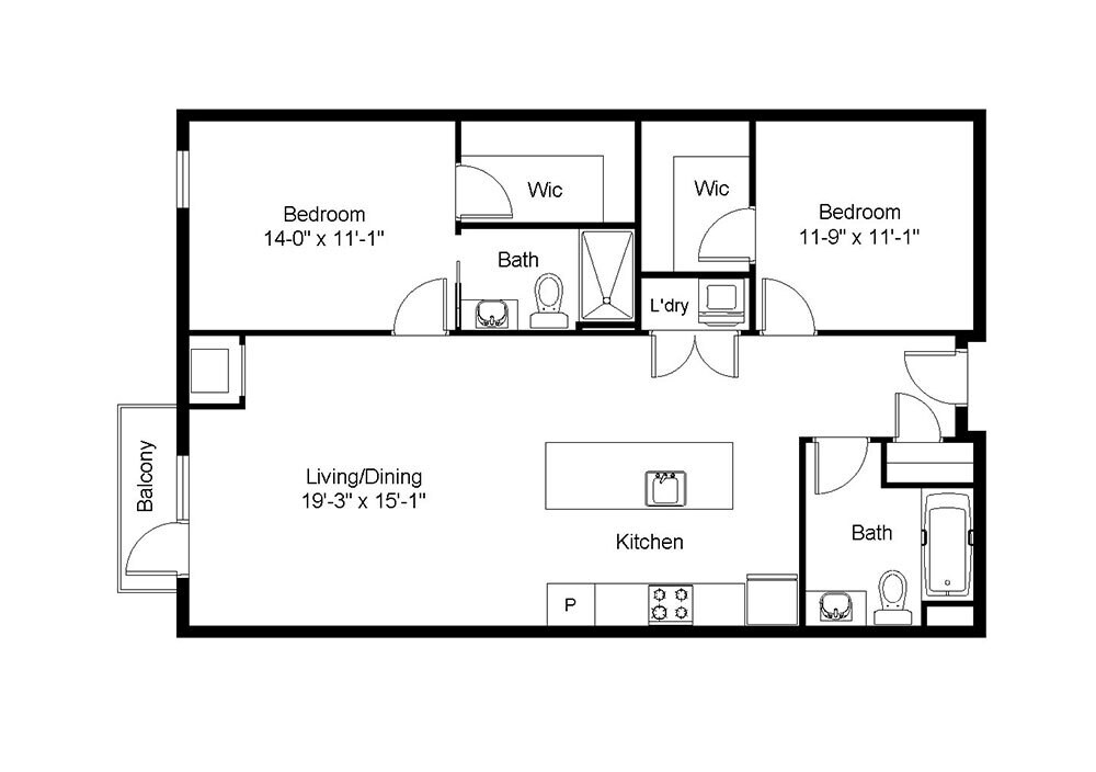 Apartment Model: 2A 1800 Lake$2,2602 Bedroom, 2 Bath, 1031 sq ftAvailable Now![]()