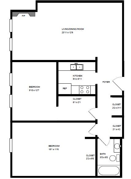 Apartment Model: Two Bedroom - 2B2 Bedroom, 1 Bath, 900 sq ftUnavailable![]()