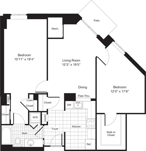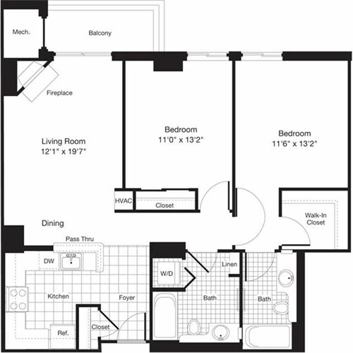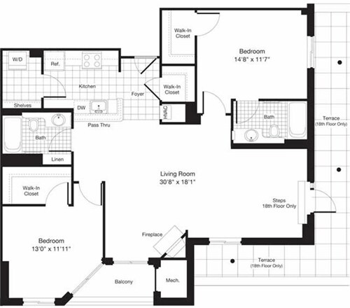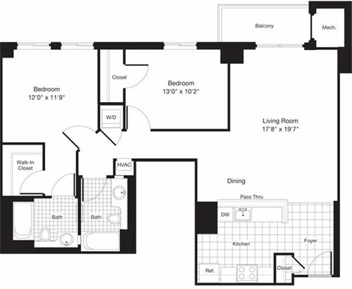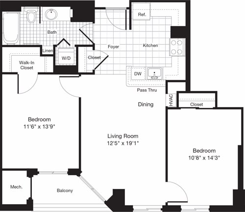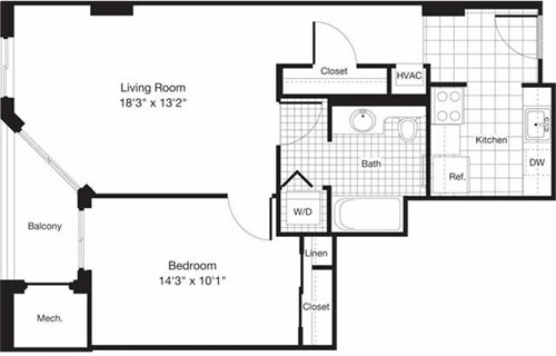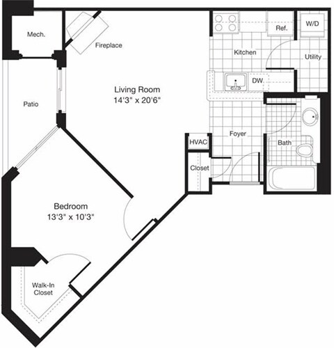 1 Bedroom J - Floorplan 1 Apartment Unit: 01-0303Apartment Model: 1 Bedroom J$2,2541 Bedroom, 1 Bath, 683 sq ftAvailable Now1 Bedroom O