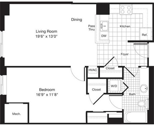 Apartment Model: Studio FCall For RatesStudio, 1 Bath, 625 sq ftUnavailable![]()