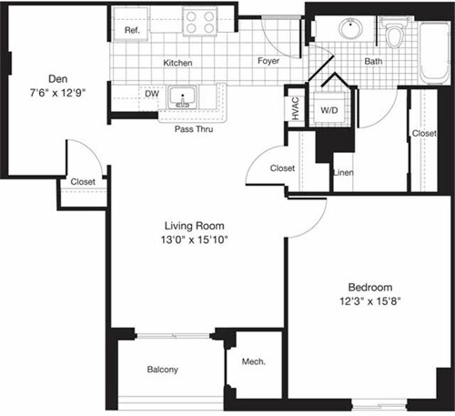Studio, 1 Bath, 603 sq ftModel Gallery