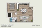 One Bedroom, One Bath - Floorplan 1 ![]()
