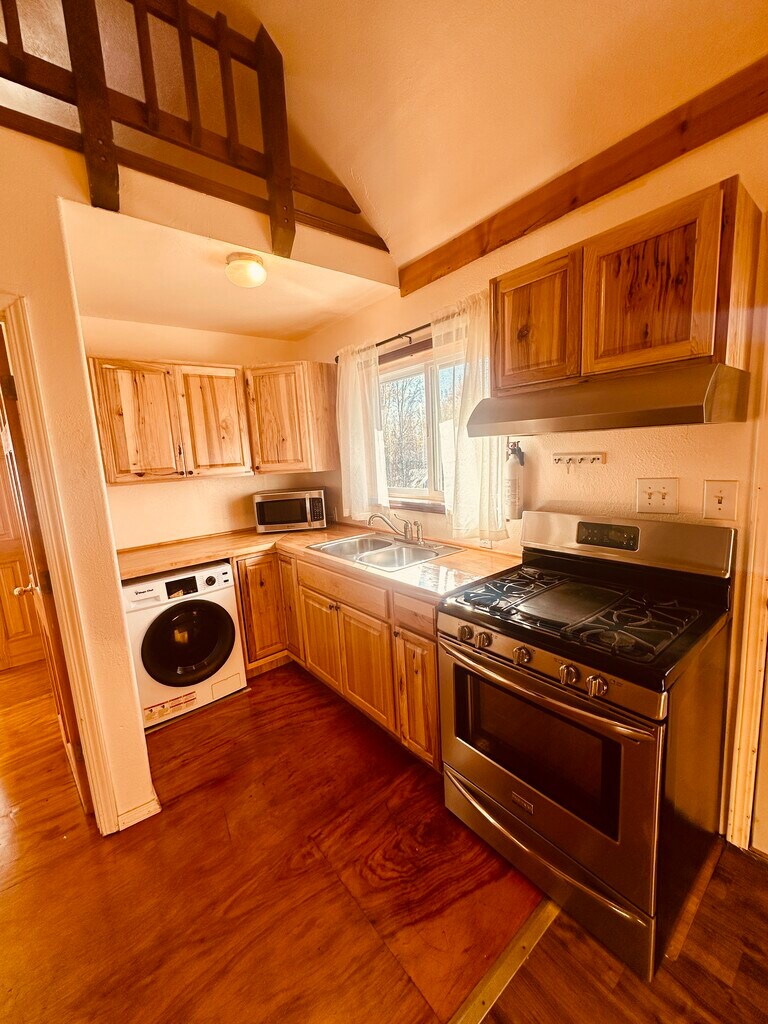 PM FOR SCREENING QUESTIONS PRIOR TO SHOWING. This beautifully renovated Alaskan Cabin is tucked away in a quiet, peaceful neighborhood near Rainbow Lake, featuring 1 bedroom, 1 bathroom and a spacious loft for storage. A lovely open design, a cozy fireplace, stainless steel appliances, gorgeous hickory cabinets, on demand hot water, dishwasher and a washer and dryer, all NEW! Enjoy the serenity of nature with direct access to the lake, perfect for fishing , kayaking or simply soaking in the views. Owner pays for lawn, snow and trash. Tenant pays electric and gas. Additional toy parking on approval $50.00 per month per vehicle. Available NOW! 1 year lease. 2 pets on approval with pet fees. Limit 2 occupants. NON SMOKING PROPERTY. NOT ACCEPTING ANY FORM OF HOUSING VOUCHERS. Listed by Nate Castle-Alaska Property Managers.