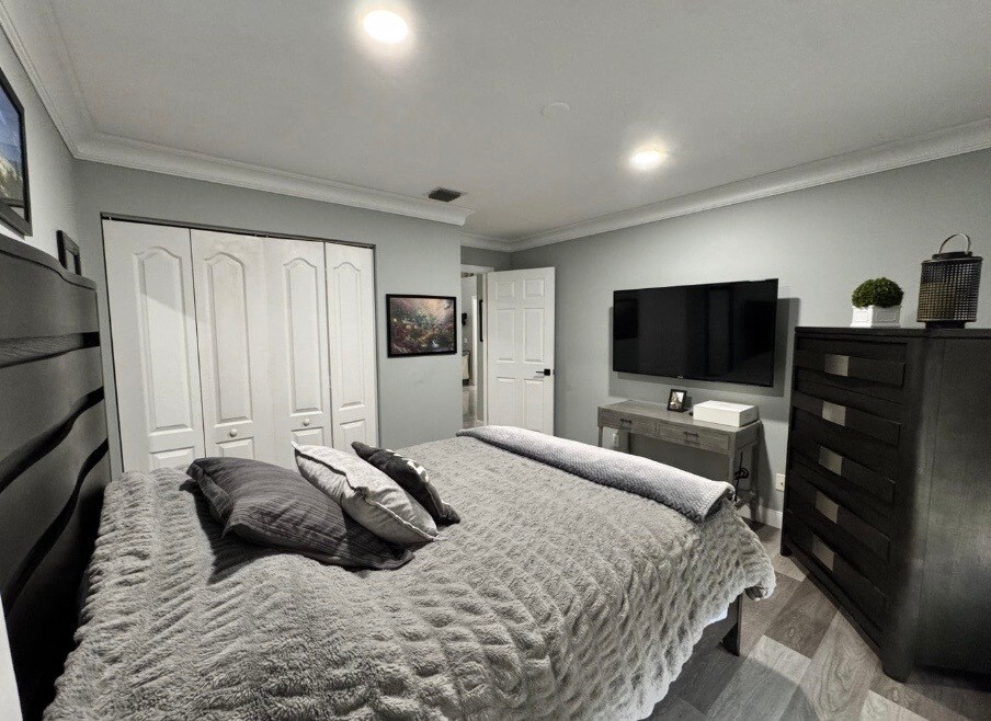 Courtesy of Partnership Realty Inc.----- Completely remodeled 3-bedroom, 2-bath single-story home with a 2-car garage in the highly desirable gated community of Symphony Bay. This light and bright home features vaulted ceilings, a spacious open layout, and a split floor plan. Situated on a corner lot with a screened patio, lanai, and grassy yard—perfect for outdoor living. The updated kitchen boasts granite countertops, crisp white cabinets, tiled backsplash, and stainless-steel appliances. Recessed lighting throughout adds a modern touch. The luxurious primary suite includes tray ceilings, walk-in closet, dual sinks, soaking tub, and separate shower. Full accordion shutter storm protection. Enjoy resort-style amenities: pool, tennis, basketball, playground, gym, and clubhouse