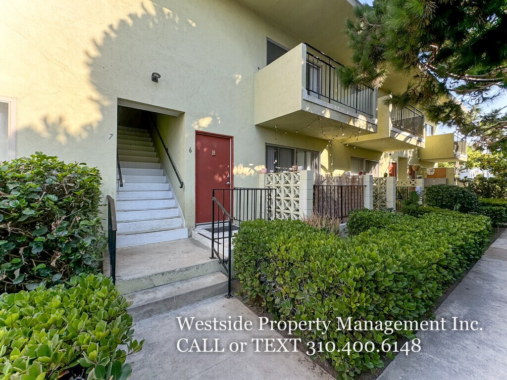 Upper unit open living room to kitchen, equipped with brand new stove, fridge (not pictured) and ample cabinet space. Hallway has cabinets and leads to the full bathroom and spacious bedroom with mirrored sliding closet doors. Property is well maintained, lush landscaping, serene beach breeze from your private balcony. On site shared laundry, small pets ok, utilities include water, trash, street parking only. Prime Santa Monica neighborhood, close proximity to all the world class shopping and fine dining, Santa Monica Pier, Mall, Santa Monica College and so much more!