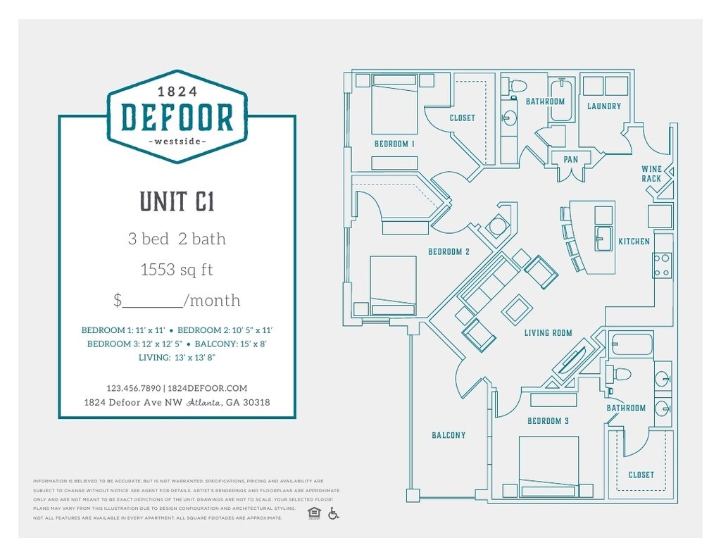 The current rent special at 1824 Defoor Apartments is: Lease today and receive ONE MONTH FREE on select units!.
