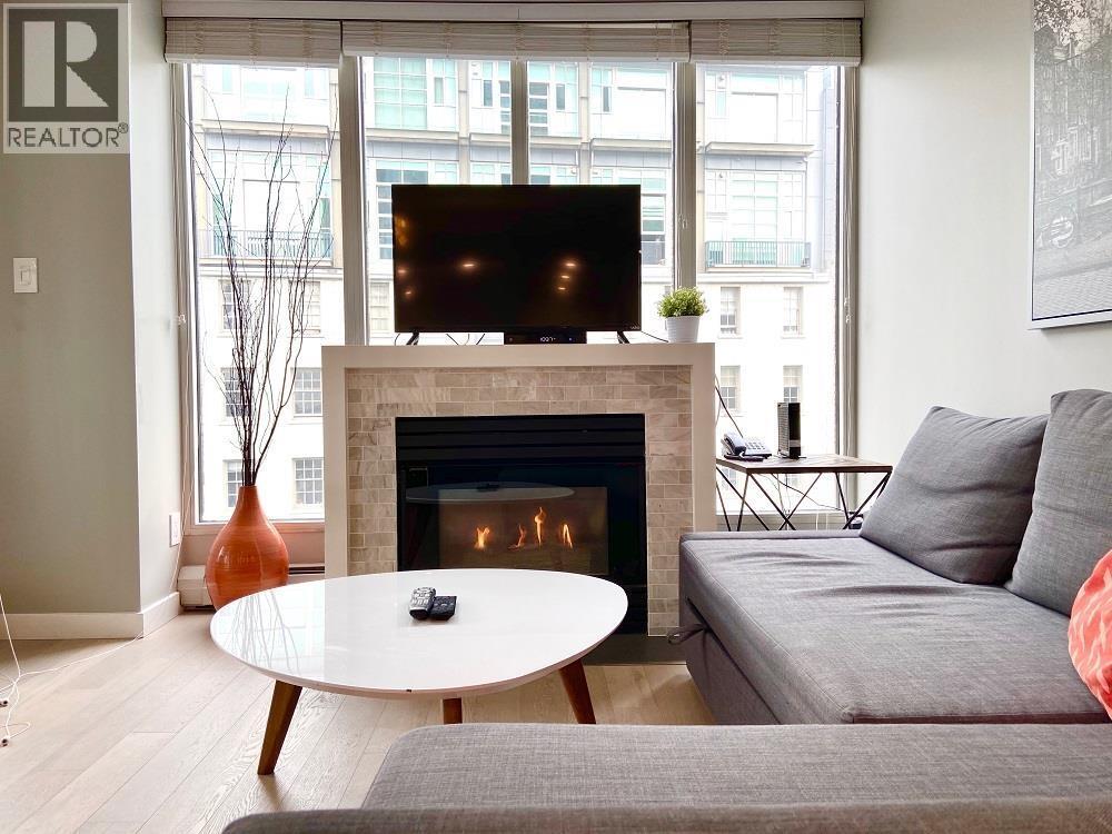This spectacular 1 bedroom,1 bathroom Vancouver Furnished Condo for Rent features beautiful modern décor,a large private balcony with city views,hardwood flooring,large windows,a den area and perfect amount of living space. Find a fireplace anchoring the main living space,an L-shaped sofa,modern home accents and access to the balcony. This open concept design enjoys a dining area complete with seating for 4 and access to a brilliant kitchen. The kitchen features beautiful dark cabinetry,a marble backsplash,quartz and wood countertops,a breakfast bar with seating for 2 and upscale Subzero and Bosch appliances. Find the den area with a perfect workstation and chaise lounger and enjoy the flexibility in this space. (id:52069) ID#: 2002668