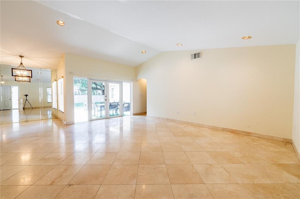 Rare opportunity in gated Flamingo Estates—one of the community’s largest, fully-usable corner lots (16,000?+sqft) wrapped in a 6-ft PVC fence, giving you room for a dream pool, garden and endless play space. Inside, soaring vaulted ceilings, impact windows and polished marble tile fill the home with light and elegance. A granite-island kitchen with stainless appliances flows into wide living and dining zones that open through French doors to a covered patio and sun-washed terrace. Barrel-tile roof 2016, stamped-concrete drive and oversized two-car garage add peace of mind. Minutes to parks, top schools, shopping, dining and major highways—space, style and convenience rarely found in Flamingo Estates