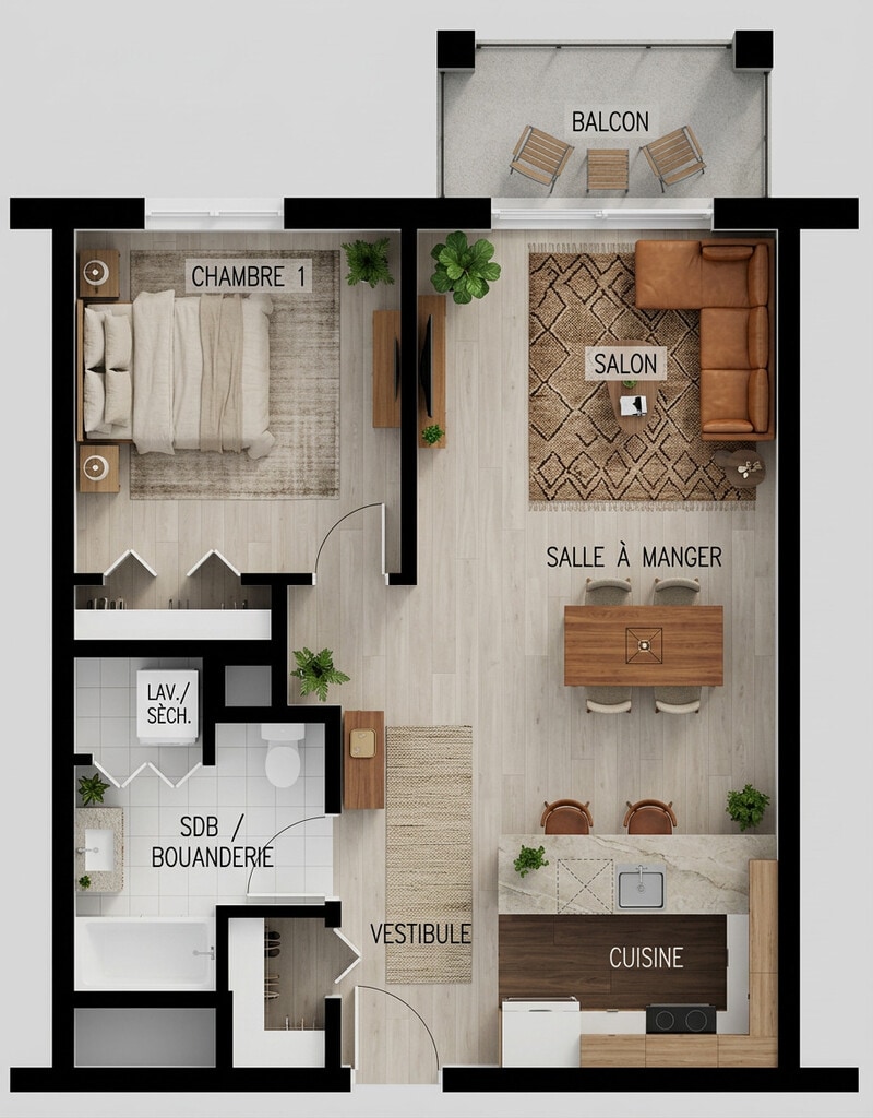 1845 Des Cèdres offers spacious high-end condominiums characterized by modern and refined architecture, providing a luxurious and comfortable living experience. Each condo is designed with high-quality finishes and comes equipped with six appliances, as well as a private balcony allowing residents to enjoy views of the surrounding area. The building is easily accessible to public transportation and is located close to shops, schools, parks, and other essential services, offering a practical and enjoyable lifestyle.