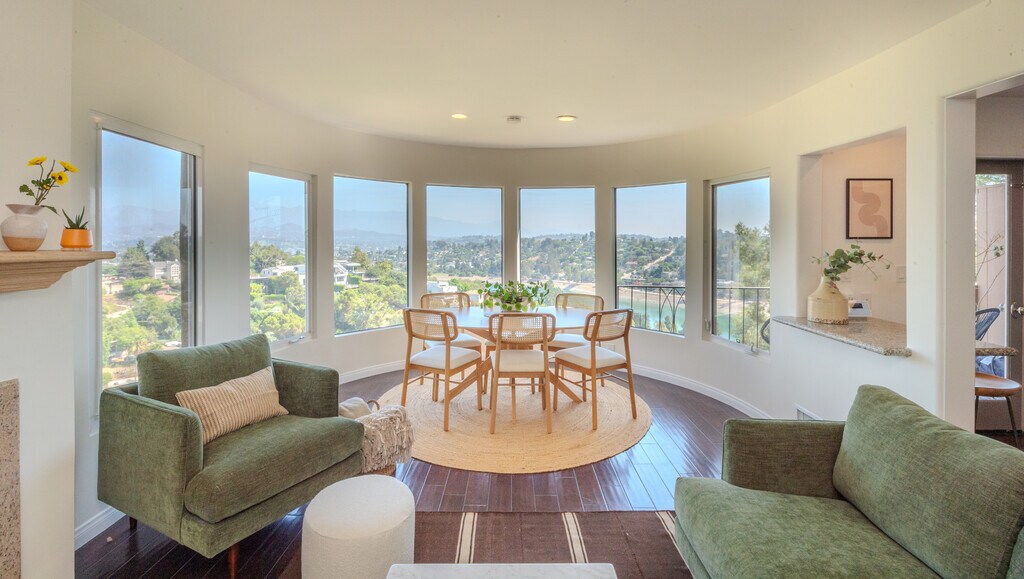 Fully Furnished Hilltop Gem with amazing views of the Silverlake Reservoir, hills, mountains, city lights. Two story townhouse style unit with Large master bedroom. Very quiet and private, the property is surrounded by multi-million dollar homes.