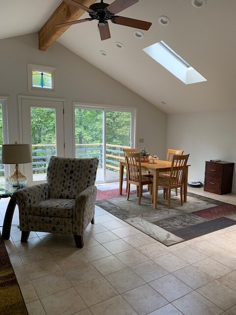 Peaceful, spacious, furnished one bedroom loft apartment on private estate. The back deck overlooks the forest. Additionally, a front balcony looks east from the bedroom. $1600 per month includes utilities (except phone/internet). Garage included. Floor heat throughout.