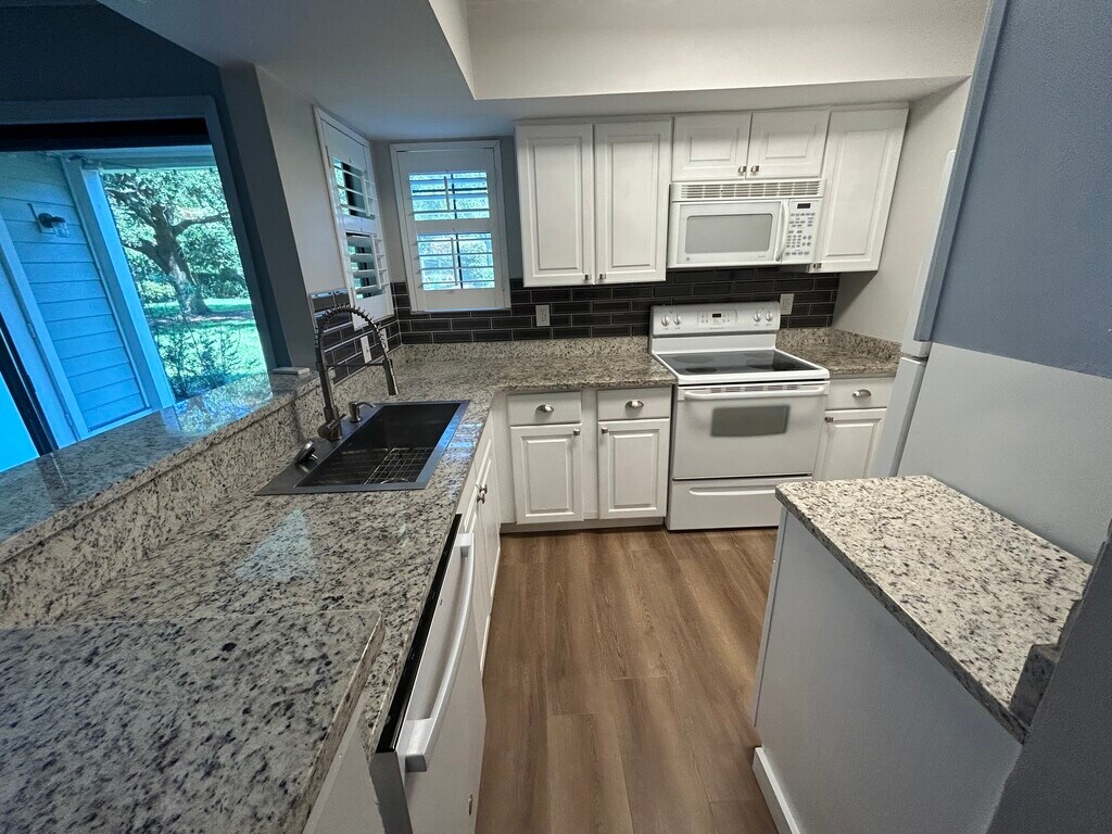 Newly renovated, 3 bedroom, 2 bath, ground floor condo in gated community. Lease is for 12+ months. New luxury vinyl plank flooring throughout, granite kitchen countertops, new backsplash, and freshly painted. Kitchen is equipped with a microwave, electric glass top stove, refrigerator, and dishwasher; spacious bedrooms; a laundry room with the washer and dryer included Bathroom tile floors and plantation shutters. Glass doors leading to spacious private patio with outside storage overlooking common area and pool. Step out of your back door and you are steps from the pool. Use of washer and dryer included with rental. Animal friendly grounds. This community has mature trees and multiple amenities including 2 swimming pools, club house, tennis court and children's play area too! Walking distance to Towne Center for shopping, Bars, restaurants, a movie theatre and more! Tenant pay for electric, gas and cable. security deposit to take off rental market and 1 month full rent $ due at move in with keys and security card. Pets are negotiable. Proof of renter's insurance within the first three weeks of rental. References required. Water, sewer and garbage included