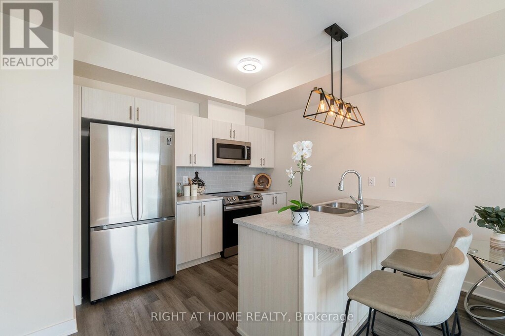 Welcome to this beautiful newly built stacked house. The property is minutes away from Kanata Smart Centre,No Frills,Food Basic,Superstore,Metro,public transit,parks and tons of amenities! A large foyer with entry closet leads you to the garage and laundry with upgraded Ceramic tiles floor. The open concept kitchen offers a generous island with decorated luxury pendant,bar seating and stainless appliances. Bright combined living and dining areas with Upgraded Modern Light Fixture and high-end Vinyl flooring throughout the balcony. The 3rd floor presents 2 large bedrooms with oversized windows and 3-piece bathroom,the master bedroom with a large walk-in closet. Luxury curtains and zebra shades for oversized bedroom windows and the dining window. Service includes common road snow removal,maintenance and garbage. No Smoke and no pet please. Credit reports and employment proofs are mandatory. Available for rent June 1,2026. (id:52069) ID#: 2171714