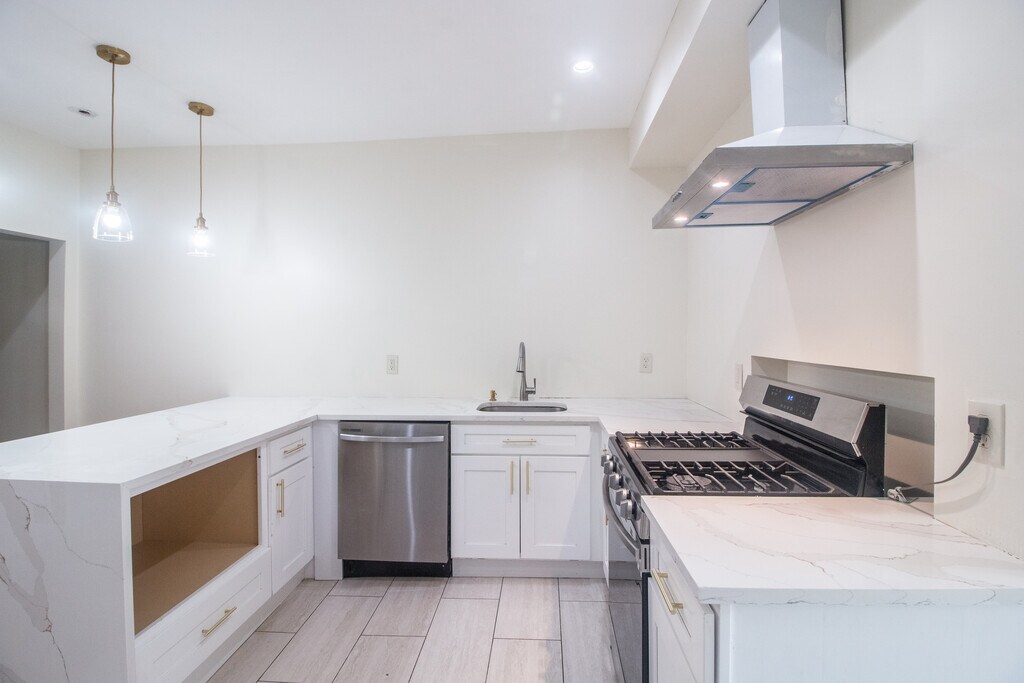 Dazzling spacious three bedroom and two full bath first floor unit with high-end finishes, central air and washer/dryer hookup. One parking spot included. Exclusive access to the back deck makes together time perfect under the stars. Hardwood floors throughout. High ceilings offer more volume. Primary bedroom has en suite bathroom that will amaze and a room that could be used as a spectacular walk-in closet or even an extra room for guests. Kitchen is equipped with ample quartz counter tops, a breakfast bar and a coffee alcove. Recessed lighting adds even more crispness to the space. Located near transportation and close to downtown. Ready for immediate move-in.