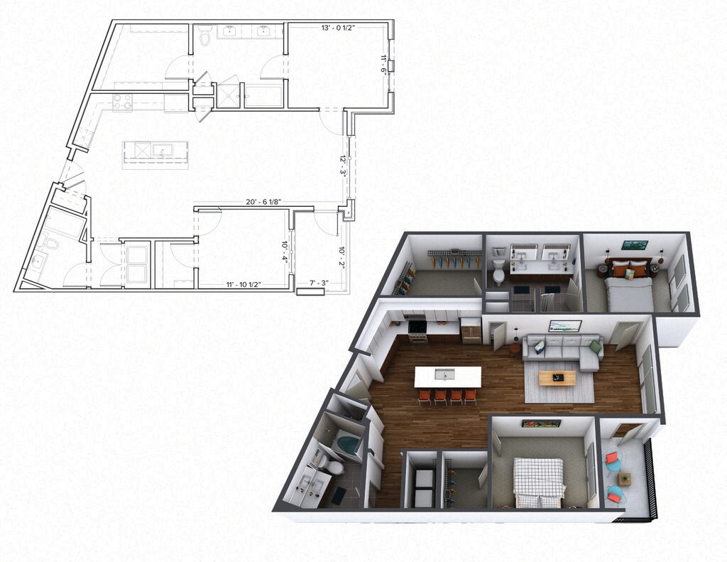 1 Bed, 1 Bath, 722 sq ftModel Gallery