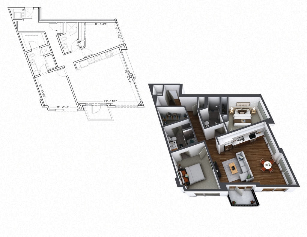 1 Bed, 1 Bath, 722 sq ftTotal Monthly PriceAvailable Apr 22Model Gallery