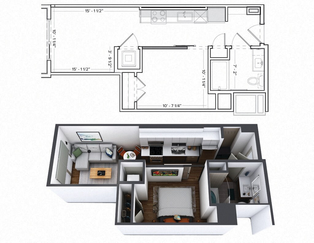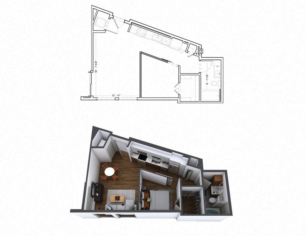 Studio, 1 Bath, 522 sq ftModel Gallery