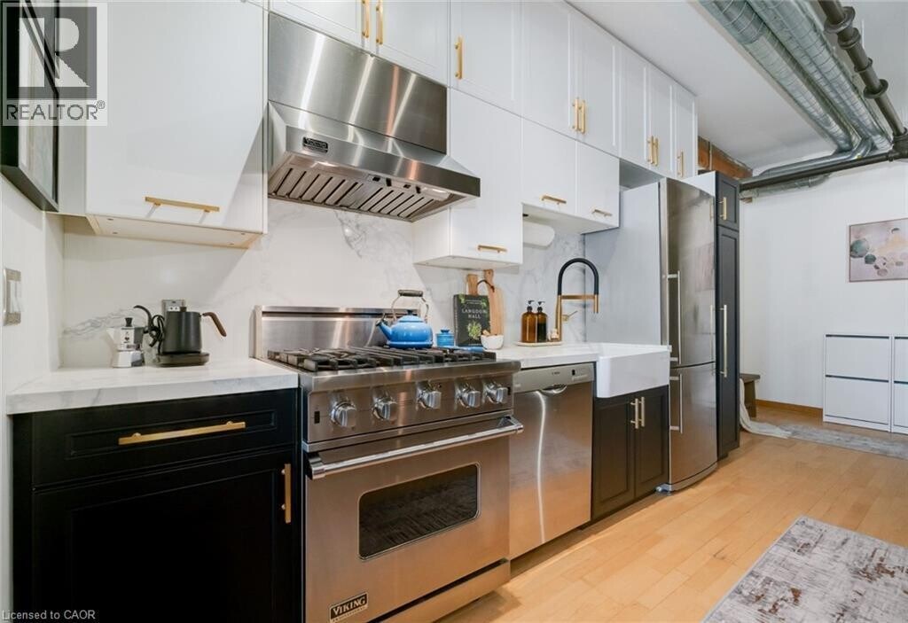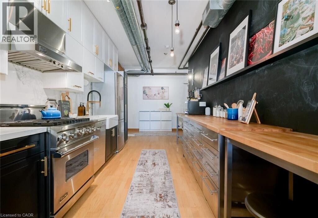 Welcome to Suite 5 of the Boiler Factory Lofts,a rare boutique heritage conversion with only 11 units. This true hard loft offers approx 900 sq. ft. with exposed brick & beams,10-ft. ceilings,oversized windows flooded with natural light,wine wall,and a 30-ft. statement chalkboard wall. Plus,enjoy your own 243-sq. ft. private rooftop terrace for relaxation and effortless entertaining. The fully upgraded kitchen has ceiling-high cabinets,a Viking professional gas range,Blomberg fridge,Grohe semi-professional faucet,and Franke farmhouse sink. Spacious bedroom easily accommodates a king-sized bed. Large open concept layout with living & dining area. Ample storage with 2 closets,ensuite storage unit,and laundry closet. Just steps to St. Lawrence Market and everything Old Town Toronto has to offer,Distillery District,Financial Core,Eaton Centre,and green spaces. **** For Complete Property Details or Appointment View Click On 'More Information' Icon,'Brochure' or 'Multimedia' Links or 'View Listing on REALTOR website' **** (id:52069) ID#: 2203886