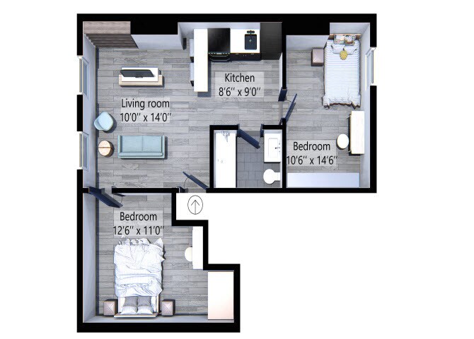2 Beds, 1 Bath, 650 sq ftModel Gallery