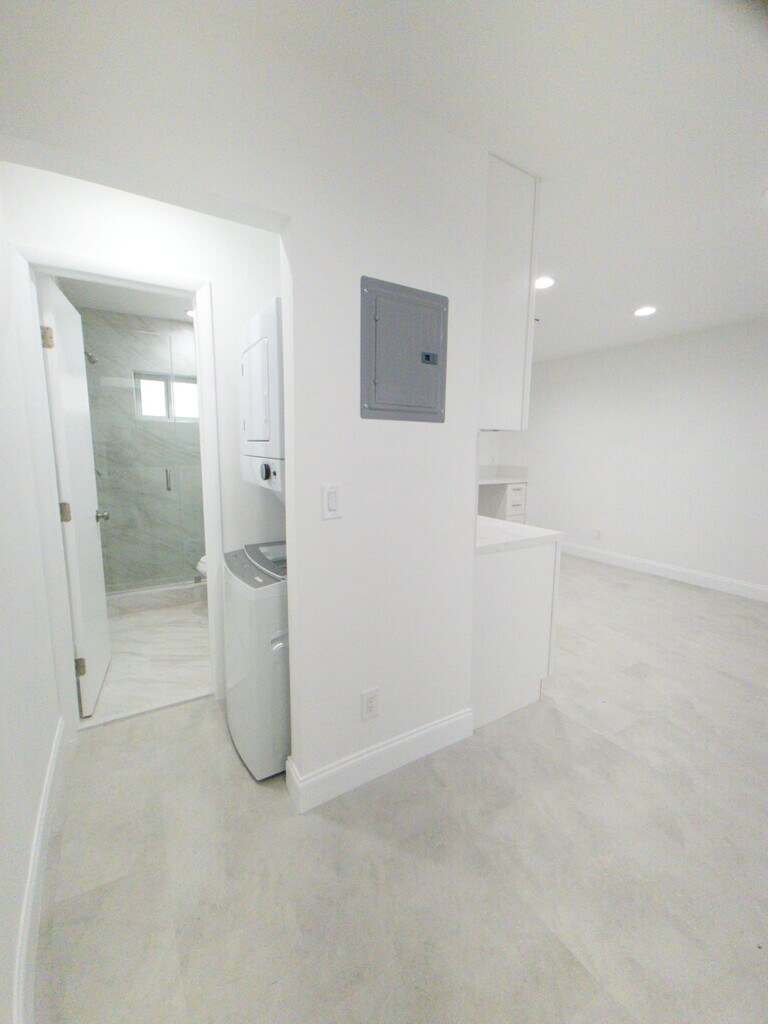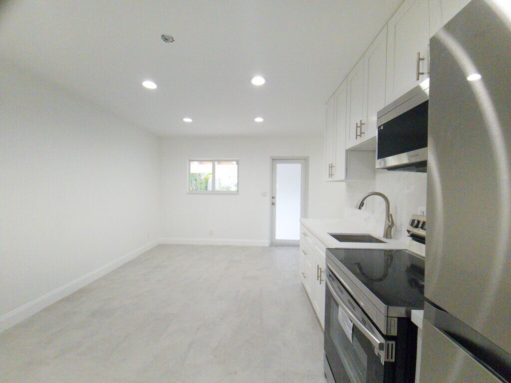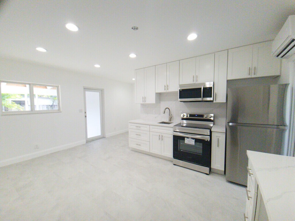 Gorgeous studio apartment blocks away from the fantastic nightlife, restaurants, and shopping on Las Olas Blvd. Quiet and safe neighborhood. Modern updates throughout including recessed lighting, stainless steel appliances and garbage disposal. Quartz countertops, breakfast/eating bar, and lots of cabinets/storage. Mini-split unit for energy efficient cooling and heating. Washer/dryer in unit. Ring doorbell for security. 1 off-street parking space. Renters insurance required. Owners willing to consider one small pet for additional monthly fee. Come make this place your new home!