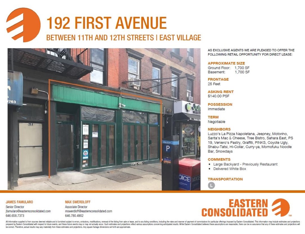 190 1st Ave is located in the East Village Neighborhood and 10009 Zip code of New York, NY.