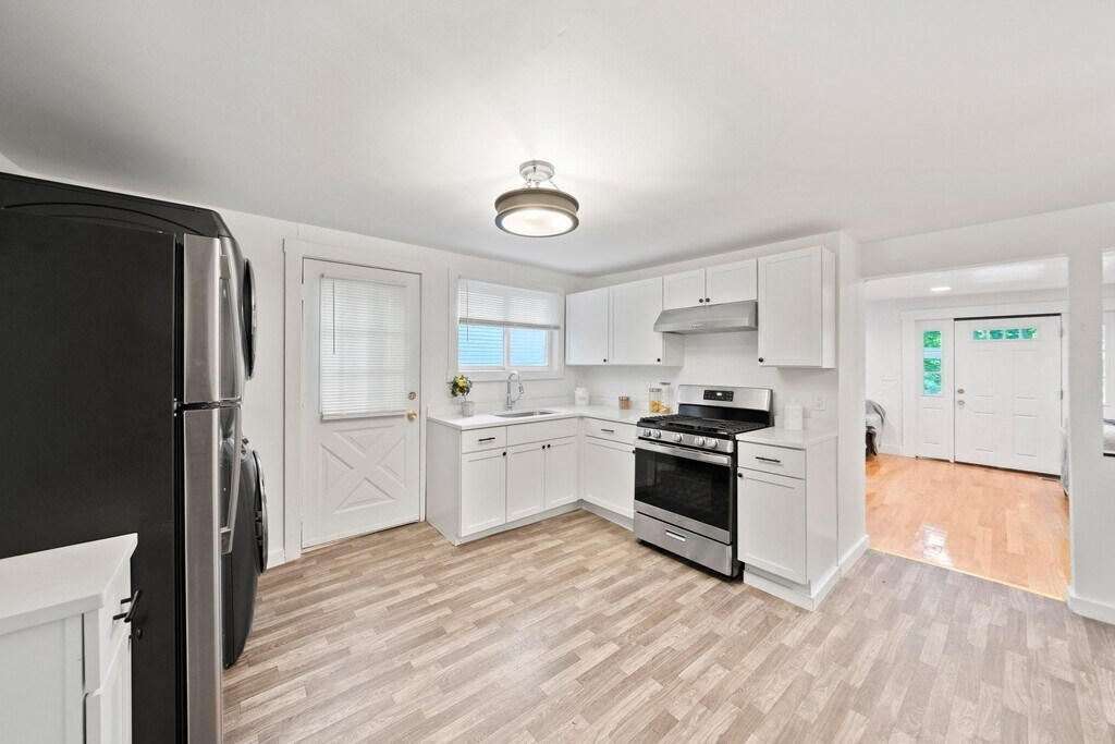 Welcome home to this bright, open, and newly renovated 3-bed, 1-bath apartment in quiet Quincy! Enjoy living at the end of a cul-de-sac in a peaceful neighborhood with a beautiful deck, patio, and yard. It has everything you need - in-unit laundry, hardwood floors, plenty of living space, and two free off-street parking spots. Ideal for all commuters - enjoy a short walk buses or a short drive (5 minutes) to the Quincy Adams or Wollaston MBTA red line stations. Easy and quick access to I-93, Blue Hills State Park, Granite Links, schools, beaches, and more! Great for South Shore living with easy access to downtown Boston. No brokers fee. Security deposit and first month's rent due at signing. Available now!