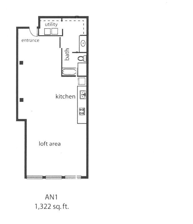 AN1 - Floorplan 1 Apartment Unit: 222Apartment Model: AN1$2,1461 Bedroom, 1 Bath, 1322 sq ftAvailable NowFloorplan A12