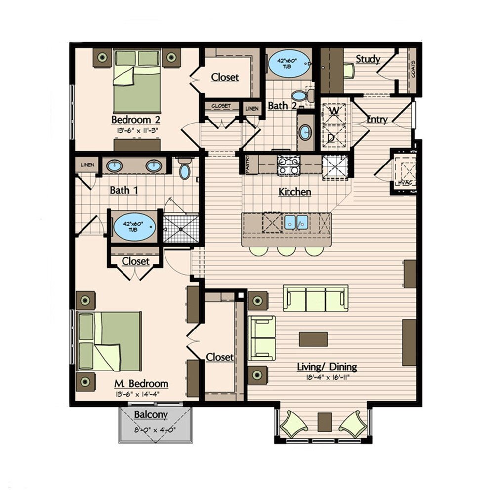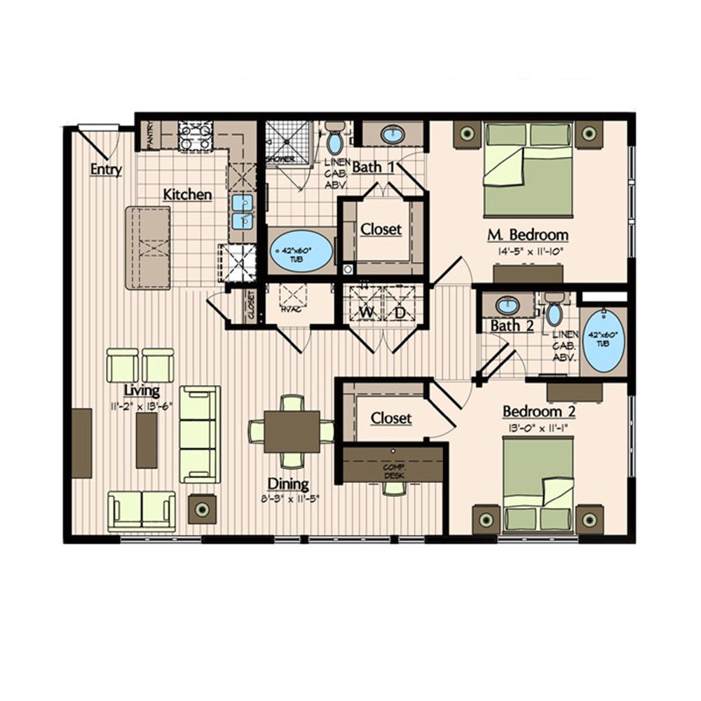 Apartment Model: B4From $3,0302 Bedroom, 2 Bath, 1489-1531 sq ftUnavailable![]() - B4 - Floorplan 1