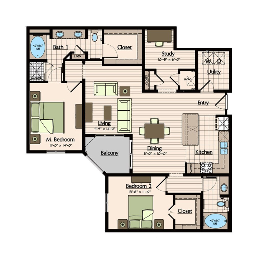 - 1 BedroomShow Unavailable Floorplans- Floorplan A2- From $1,8201 Bed, 1 Bath, 755-797 sq ftAvailable Now- Model Gallery- Floorplans- Photos- Availability Details- Price - Availability Date - Unit - Sq Ft - From $1,820 - Available Now - A2 - 755-797 sq ft - Model Amenities and Features- Features- Air Conditioning