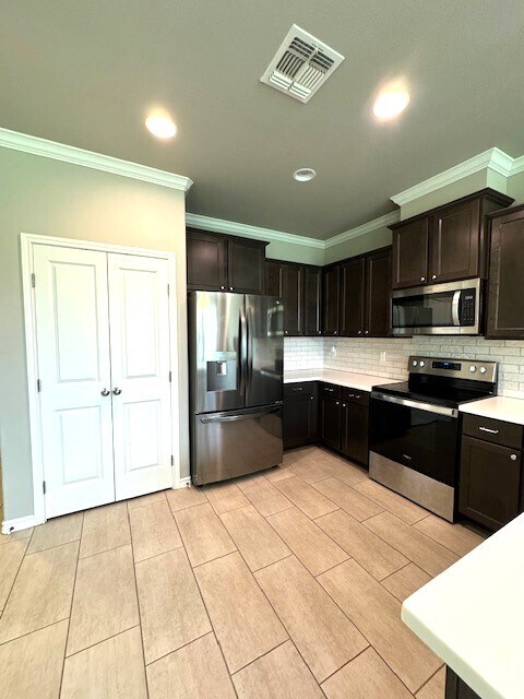 Newer home (5 years old) in the popular Aransas Pass neighborhood near the schools. All tile floor thru out, high ceilings and crown molding. BONUS: Washer, dryer and refrigerator are included! Split bedroom floor plan. This property is pet friendly with additional pet deposit. No smoking allowed indoors!