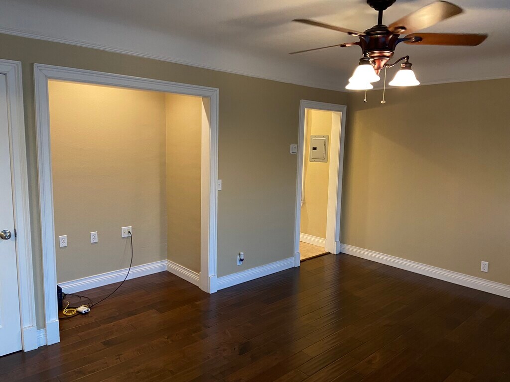 Large, gorgeous and charming 1 Bedroom apartment with full bathroom with available GARAGE Very private and quiet setting with green-space and cute courtyard Completely renovated with the following: • Hardwood floors • Stainless Steel Appliances • All new cabinets, and lots of them in kitchen! • Granite countertops • Air Conditioning • Ceiling fans • New windows with screens • Completely new bathroom with beautiful tile, new fixtures/cabinets and full tub Large 1-Car GARAGE with additional room for storage available Great neighborhood and only 3 blocks to the beach with several parks nearby Shops, restaurants and entertainment within walking distance. Laundry is on site Beautiful outdoor space! Available 10-01-25