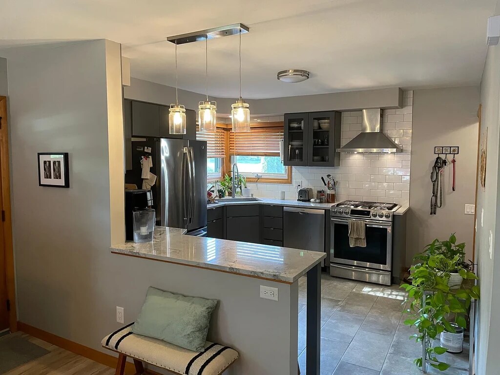 This spacious 3 bed 2 bath home is just one block from downtown Middleton restaurants and shopping and one block from University Avenue offering direct access to Madison (15 minute drive to campus) and the beltline (1 minute drive). Located in a historic neighborhood, this home features a mid-century modern design and is fully remodeled with a designer kitchen and new bedroom and full bathroom in the basement, tons of natural light in the living room and bedrooms, vinyl plank and oak wood flooring throughout, new carpet, and a spacious upper deck with full sun for entertaining. The home features in-unit washer and dryer as well as a big family room in the basement and a huge walk-up attic for your storage needs. Just blocks from Willy Street Co-op, three blocks from Tiedeman's Pond, and less than a mile from Pheasant Branch Conservancy, this lovely home is in the heart of it all.