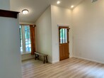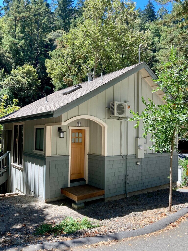 Property Overview: Tucked away in Beardsley Canyon, a peaceful residential area in the Los Gatos hills, this 525 sq. ft. studio cottage offers a quiet retreat surrounded by natural beauty. Located near Beardsley Creek and just minutes from the Lexington Reservoir, the property provides a tranquil atmosphere with the soothing sounds of the creek and breathtaking views of the surrounding hillsides. You’ll enjoy the serenity of the canyon setting while still being just 3.4 miles from downtown Los Gatos, with easy access to shops, dining, and entertainment. A creek provides a serene background song. This is a private property, not an ADU. The cottage features vaulted ceilings, a skylight, and a ceiling fan, creating a bright, airy, and comfortable atmosphere. The living space is framed by double tall windows, offering a pleasant seating area. Recent updates include brand new laminate flooring throughout, adding both modern appeal and durability. The bathroom is designed with a clean, functional look, including a pedestal sink, tile flooring, and a shower over the tub.